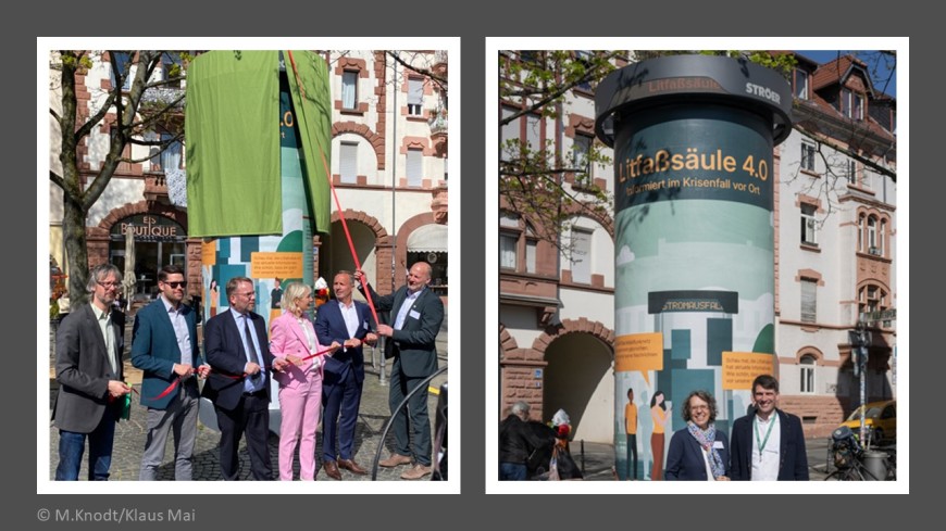 170 Jahre alt – und kein bisschen verstaubt: Die Litfaßsäule 4.0 ist da – digital, smart & krisenfest! Das LOEWE emergenCITY Team hat heute gemeinsam mit dem hessischen Wissenschaftsminister Timon Gremmels, der hessischen Digitalministerin Prof. Dr. Kristina Sinemus, dem Darmstädter Bau- und Ordnungsdezernent Paul Georg Wandrey und dem Vizepräsident der TU Darmstadt Matthias Oechsner sowie der Ströer SE & Co. KGaA auf dem Riegerplatz in Darmstadt die erste energieautarke, digitale Litfaßsäule 4.0 eingeweiht.